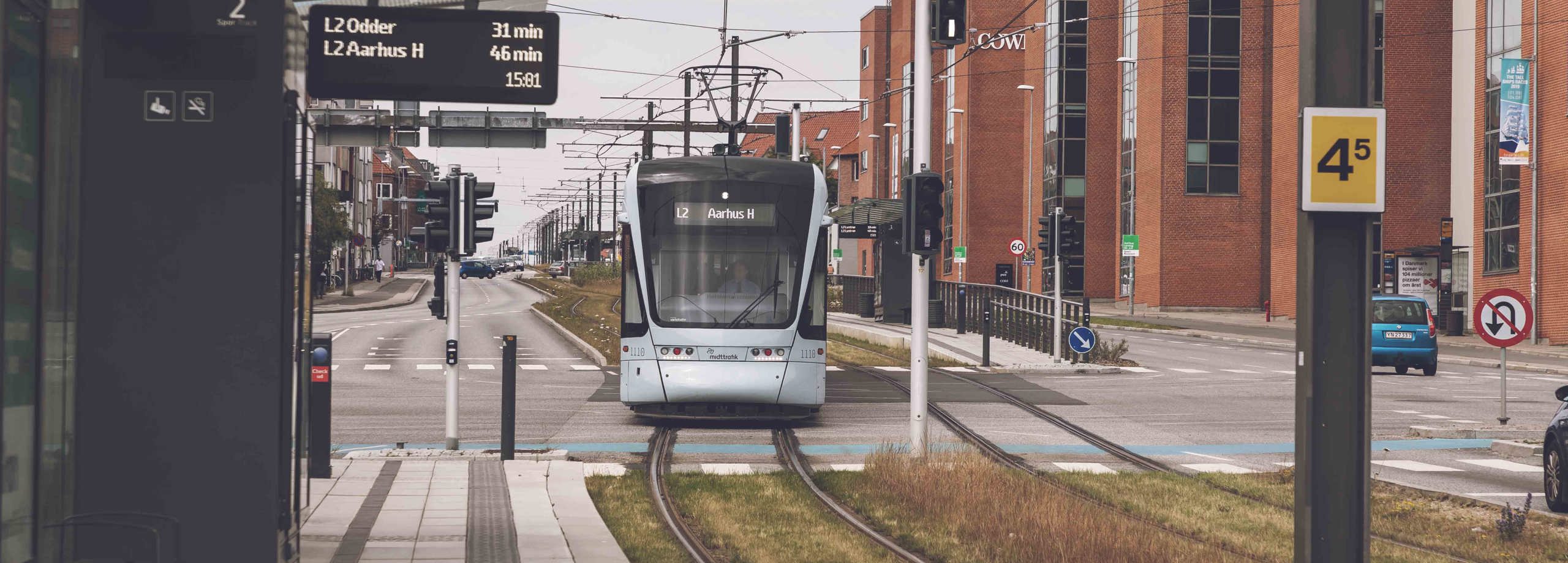 - The distance to Aarhus is about 45 km. We recommend busses from Aarhus Airport.